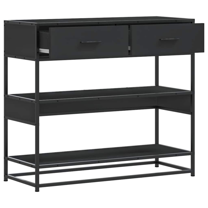 Dieser Konsolentisch bietet reichlich Stauraum und ergänzt gleichzeitig deine Wohnungseinrichtung. Er eignet sich perfekt für Wohnzimmer, Schlafzimmer und Flure. Starkes und langlebiges Material: Holzwerkstoff ist ein langlebiges und robustes Material mit einer glatten Oberfläche, das gegen Feuchtigkeit, Verformung und Rissbildung beständig ist, wodurch es eine zuverlässigen Wahl für die Herstellung von Möbeln ist.Stabil und haltbar: Mit einem Metallgestell versehen, verleiht der Sofatisch deinem Interieur eine industrielle Note und bietet auch außergewöhnliche Haltbarkeit, Stabilität und Korrosionsbeständigkeit.Reichlich Stauraum: Dieser Flurtisch ist mit Schubladen und Ablagen versehen und bietet dadurch reichlich Stauraum, um deine Zeitschriften, Bücher, Fernbedienungen und andere Kleinigkeiten griffbereit aufzubewahren.Robuste Tischplatte: Der Konsolentisch besitzt eine stabile Tischplatte, die Platz für Snacks, Getränke oder einige Dekoartikel wie Bilderrahmen oder sogar Topfpflanzen bietet.Pflegeleicht: Dank seiner glatten Oberfläche lässt sich der Flurtisch mit einem feuchten Tuch leicht reinigen und erfordert wenig Pflege. Achtung:Um ein Umkippen zu vermeiden, sollte dieses Produkt mit der mitgelieferten Wandhalterung gesichert werden.