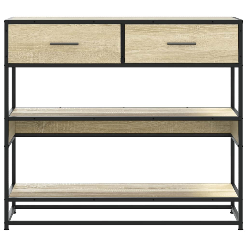 Dieser Konsolentisch bietet reichlich Stauraum und ergänzt gleichzeitig deine Wohnungseinrichtung. Er eignet sich perfekt für Wohnzimmer, Schlafzimmer und Flure. Starkes und langlebiges Material: Holzwerkstoff ist ein langlebiges und robustes Material mit einer glatten Oberfläche, das gegen Feuchtigkeit, Verformung und Rissbildung beständig ist, wodurch es eine zuverlässigen Wahl für die Herstellung von Möbeln ist.Stabil und haltbar: Mit einem Metallgestell versehen, verleiht der Sofatisch deinem Interieur eine industrielle Note und bietet auch außergewöhnliche Haltbarkeit, Stabilität und Korrosionsbeständigkeit.Reichlich Stauraum: Dieser Flurtisch ist mit Schubladen und Ablagen versehen und bietet dadurch reichlich Stauraum, um deine Zeitschriften, Bücher, Fernbedienungen und andere Kleinigkeiten griffbereit aufzubewahren.Robuste Tischplatte: Der Konsolentisch besitzt eine stabile Tischplatte, die Platz für Snacks, Getränke oder einige Dekoartikel wie Bilderrahmen oder sogar Topfpflanzen bietet.Pflegeleicht: Dank seiner glatten Oberfläche lässt sich der Flurtisch mit einem feuchten Tuch leicht reinigen und erfordert wenig Pflege. Achtung:Um ein Umkippen zu vermeiden, sollte dieses Produkt mit der mitgelieferten Wandhalterung gesichert werden.