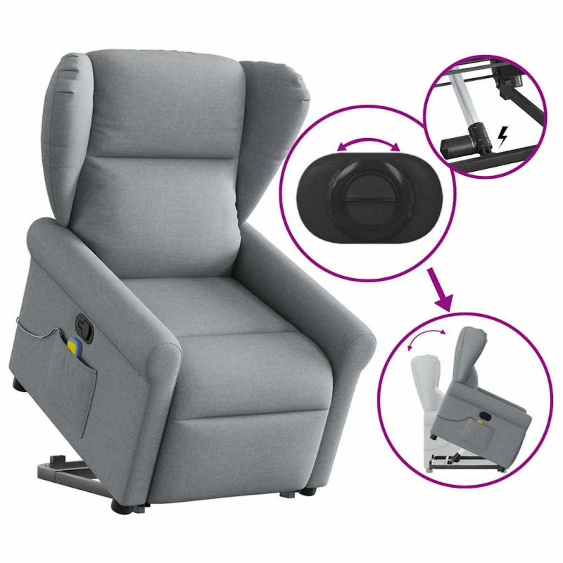 Massagesessel mit Aufstehhilfe Hellgrau Stoff