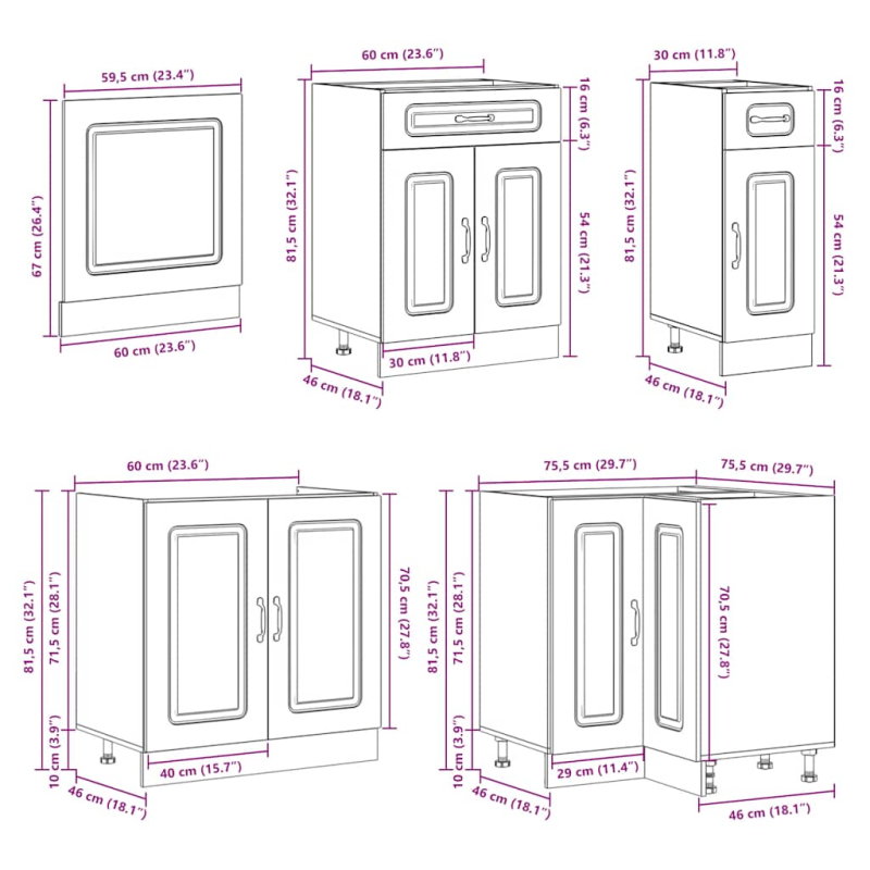 • 1 x Spülenunterschrank: 80 x 46 x 81,5 cm (B x T x H)