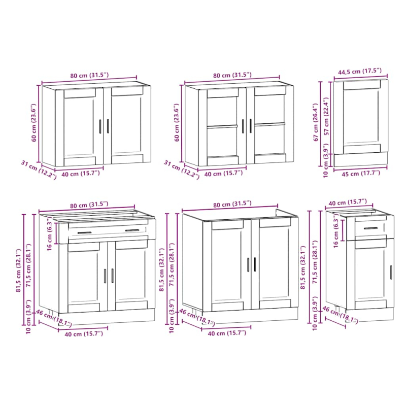 7-tlg. Küchenschrank-Set Kalmar Räuchereiche Holzwerkstoff