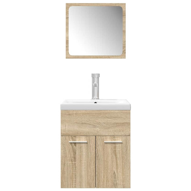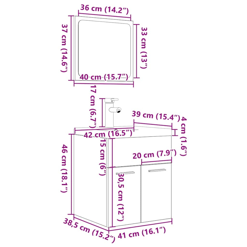 Dieses Badmöbel-Set ist eine hervorragende Ergänzung für dein Badezimmer. Es verleiht ihm ein aufgeräumtes und eindrucksvolles Aussehen! Langlebiges Material: Holzwerkstoff ist ein Material außergewöhnlicher Qualität mit glatter Oberfläche. Er zeichnet sich durch Festigkeit, Stabilität und Feuchtigkeitsbeständigkeit aus.Reichlich Stauraum: Der Hochschrank bietet reichlich Platz, um wichtigste Toilettenartikel und Badutensilien wie Seife, Shampoo, Zahnpasta usw. zu verstauen.Praktisches Becken: Das Waschbecken ist mit Überlauf ausgestattet, um bei Überfüllung Wasser abzulassen. Er erweist sich nicht nur im Alltag als sehr praktisch, sondern dient auch als ansprechendes Deko-Element in deinem Zuhause.Funktion zur Wandbefestigung: Der Badezimmerschrank und der Schminkspiegel können für zusätzlichen Stauraum an der Wand befestigt werden. Auf diese Weise kannst du deine Stellfläche maximieren und dein Zuhause übersichtlich halten.Pflegeleicht: Dank der glatten Oberflächen lassen sich der Badschrank und das Waschbecken leicht mit einem feuchten Tuch reinigen und erfordern wenig Wartung. Gut zu wissen:Schrauben und Dübel für die Montage an der Wand sind nicht enthalten. Passendes Montagezubehör muss separat gekauft werden. Wenn du dir bezüglich der Montage nicht sicher bist, wende dich bitte an einen Fachmann. Bitte lies und befolge jeden Schritt in der Anleitung.