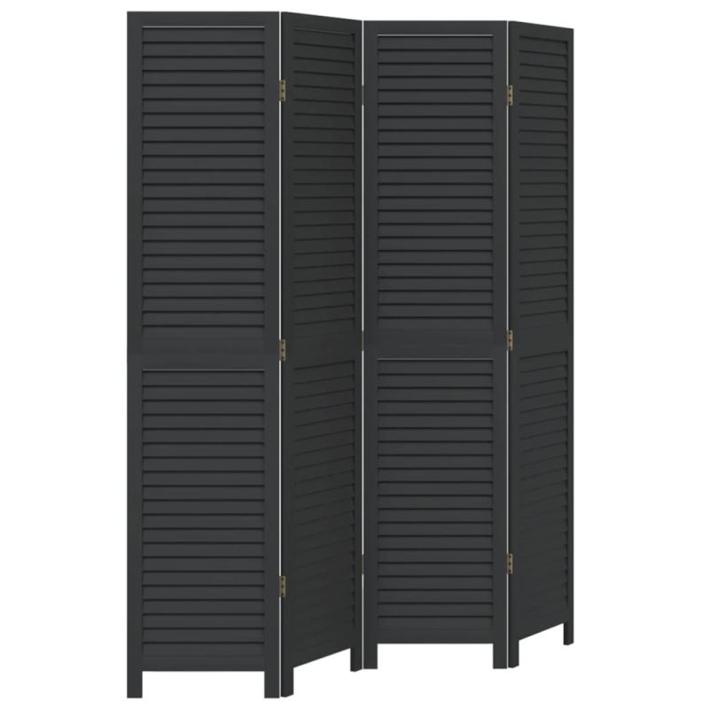 4-tlg. Paravent Schwarz Massivholz Paulownia