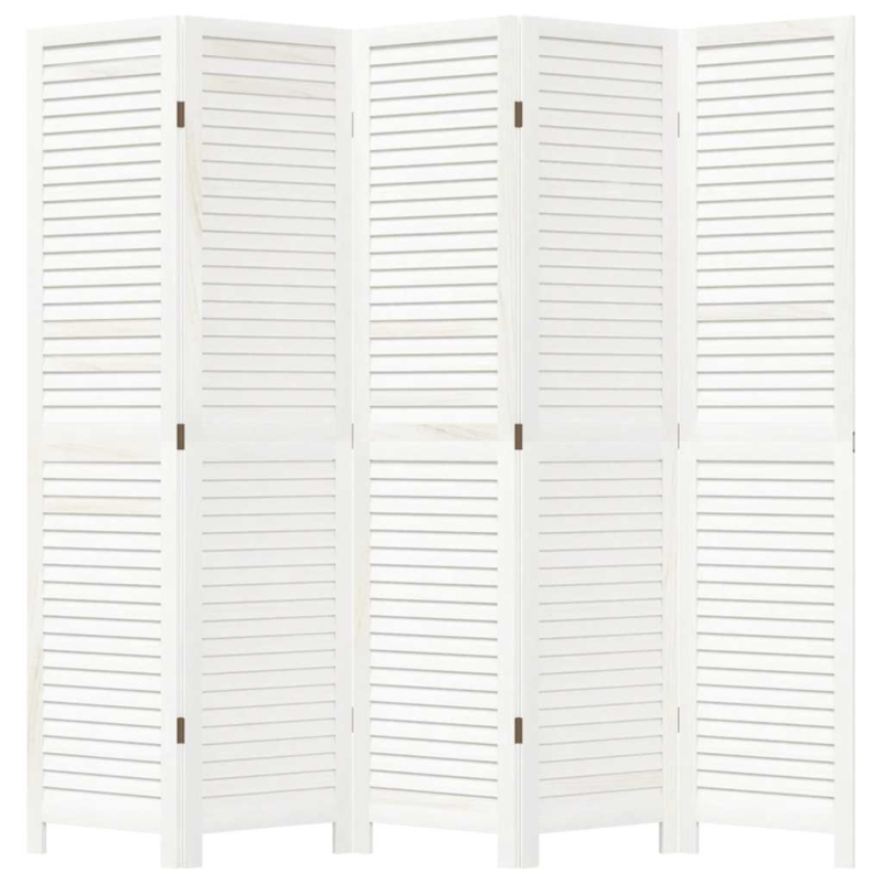 5-tlg. Raumteiler Weiß Massivholz Paulownia