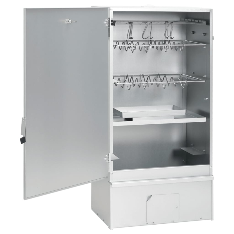 Mit diesem multifunktionalen Räucherofen mit Holzspänen und Kaltrauchgenerator kannst du ein Festmahl zubereiten und eine gemütliche Zeit im Freien mit deiner Familie genießen! Langlebiges Material: Stahl ist ein außergewöhnlich hartes und starkes Material. Er bietet Robustheit und Stabilität. Die Verzinkung bietet einen besseren Schutz gegen Rost und ist für Produkte geeignet, die im Freien verwendet werden.Viel Platz zum Räuchern: Der Outdoor-Smoker bietet viel Platz zum Räuchern von Fleisch, Fisch, Würstchen und mehr. Die mitgelieferten S-förmigen Haken und Roste erleichtern die Zubereitung der Speisen.Mit Thermometer: Der Räucherofen ist mit einem Thermometer ausgestattet, um beste Ergebnisse zu erzielen.Kaltrauchgenerator: Fülle ihn einfach mit Sägemehl und zünde ihn mit einem Teelicht an, bis das Sägemehl anfängt, seine Farbe zu wechseln. Danach kann das Teelicht entfernt und der Kaltraucherzeuger in den Räucherschrank gelegt werden. Dank des sechseckigen, kompakten Gitters brennen die Räucherspäne für bis zu 8 Stunden gleichmäßig und langsam ab. Achtung:Der Grill darf nicht in geschlossenen und/oder bewohnbaren Bereichen wie Häusern, Zelten, Wohnwagen, Wohnmobilen und Booten verwendet werden. Ansonsten besteht die Gefahr einer Kohlenmonoxidvergiftung, die zum Tod führen kann.