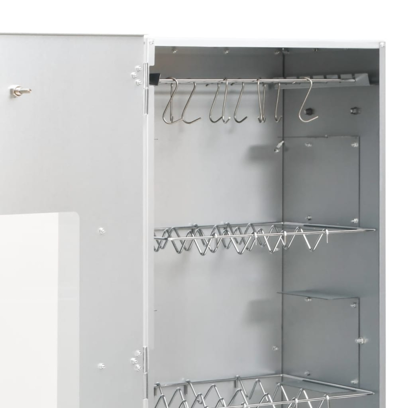 Mit diesem multifunktionalen Räucherofen mit Holzspänen und Kaltrauchgenerator kannst du ein Festmahl zubereiten und eine gemütliche Zeit im Freien mit deiner Familie genießen! Langlebiges Material: Stahl ist ein außergewöhnlich hartes und starkes Material. Er bietet Robustheit und Stabilität. Die Verzinkung bietet einen besseren Schutz gegen Rost und ist für Produkte geeignet, die im Freien verwendet werden.Viel Platz zum Räuchern: Der Outdoor-Smoker bietet viel Platz zum Räuchern von Fleisch, Fisch, Würstchen und mehr. Die mitgelieferten S-förmigen Haken und Roste erleichtern die Zubereitung der Speisen.Mit Thermometer: Der Räucherofen ist mit einem Thermometer ausgestattet, um die Kammertemperatur zu überprüfen. Dank des Glasfensters kannst du zudem das Grillgut im Inneren im Auge behalten, um die besten Grillergebnisse zu erzielen.Kaltrauchgenerator: Fülle ihn einfach mit Sägemehl und zünde ihn mit einem Teelicht an, bis das Sägemehl anfängt, seine Farbe zu wechseln. Danach kann das Teelicht entfernt und der Kaltraucherzeuger in den Räucherschrank gelegt werden. Dank des kompakten Gitters in M-Form brennen die Räucherspäne für bis zu 10 Stunden gleichmäßig und langsam ab. Achtung:Der Grill darf nicht in geschlossenen und/oder bewohnbaren Bereichen wie Häusern, Zelten, Wohnwagen, Wohnmobilen und Booten verwendet werden. Ansonsten besteht die Gefahr einer Kohlenmonoxidvergiftung, die zum Tod führen kann.