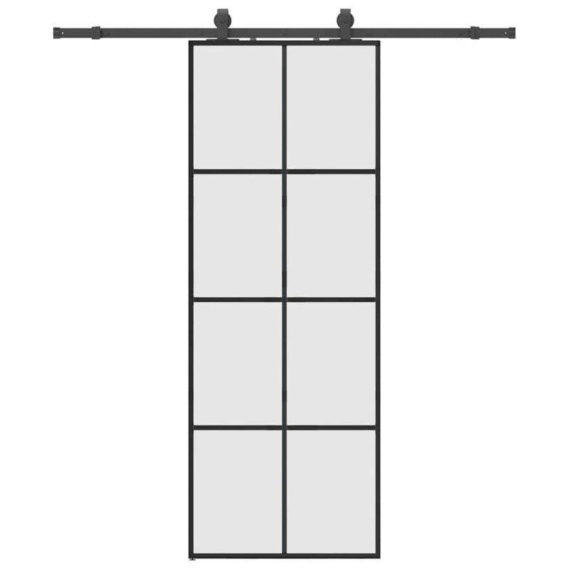 Schiebetür mit Beschlag Schwarz 76x205 cm ESG-Glas