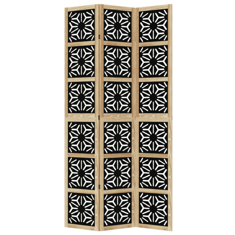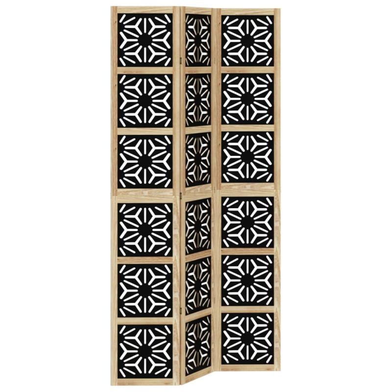 Verleihe deinem Wohnraum eine auffällige dekorative Note mit diesem bezaubernden Raumteiler. Langlebig und leicht zu reinigen: Der Sichtschutz ist aus Paulownia-Massivholz und Holzwerkstoff gefertigt, wodurch er pflegeleicht und strapazierfähig ist.Robuster Rahmen: Der Rahmen aus massivem Paulownia-Holz sorgt für Robustheit und Stabilität. Paulownia-Massivholz ist ein wunderschönes Naturmaterial. Paulowniaholz ist widerstandsfähig gegen Schädlingsbefall und Verrottung.Flexibel und einfach faltbar: Die Paravent-Teile sind jeweils durch 3 Metallscharniere miteinander verbunden. Die oberen und unteren Paneele dieser spanischen Wand sind durch verborgene 2-in-1-Scharniere verbunden. Der Raumtrenner kann also leicht bis zu einem gewissen Grad zusammengeklappt werden; dadurch spart er bei Nichtgebrauch Platz.Vielseitig einsetzbar: Der Raumtrenner eignet sich hervorragend zur Schaffung von Privatsphäre im Schlafzimmer, Wohnzimmer, Büro und anderen Räumen. Du kannst das Paravent auch vor ein Fenster stellen, um starkes Sonnenlicht abzuschirmen.Attraktiver Look: Mit seinem geometrischen Muster verleiht diese faltbare Trennwand jedem Raum mehr Charakter. Achtung:Nur für den Innenbereich!