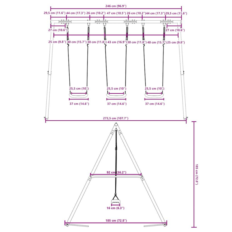 Verwandle deinen Garten in einen Spielplatz für deine Kinder mit dieser Schaukel! Robustes Metallgestell: Das Schaukelgestell besteht aus lackierten Stahlrohren, die rostfrei, äußerst robust und formbeständig sind und eine hohe Stabilität und Langlebigkeit gewährleisten. Die A-förmige Struktur bietet starken, sicheren Halt.Verstellbarer Schaukelsitz: Diese Kinderschaukel ist so konzipiert, dass sie mit deinem Kind mitwächst und daher für Kleinkinder und heranwachsende Kinder gleichermaßen geeignet ist. Durch die Anpassung der Seillänge kannst du den Schaukelsitz leicht an die wechselnden Bedürfnisse deines Kindes anpassen.Multifunktionales Spielgerät für Kinder: Diese Gartenschaukel hilft Kindern, ihr Gleichgewicht, ihre Koordination, ihre Beweglichkeit und ihre Kraft zu verbessern. Es bietet eine Vielzahl von Spiel- und Übungsmöglichkeiten.Breite Anwendungen: Dieses Schaukel-Gestell kann an verschiedenen Orten aufgestellt werden, beispielsweise in Gärten, Hinterhöfen, Kindergärten, auf Spielplätzen usw. Gut zu wissen:Bitte achte aus Sicherheitsgründen darauf, dass jede Schaukel jeweils nur von einem Kind verwendet wird.