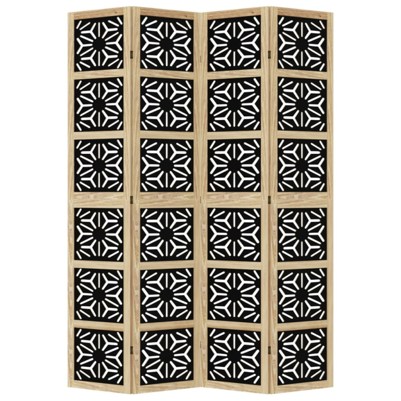 Verleihe deinem Wohnraum eine auffällige dekorative Note mit diesem bezaubernden Raumteiler. Langlebig und leicht zu reinigen: Der Sichtschutz ist aus Paulownia-Massivholz und Holzwerkstoff gefertigt, wodurch er pflegeleicht und strapazierfähig ist.Robuster Rahmen: Der Rahmen aus massivem Paulownia-Holz sorgt für Robustheit und Stabilität. Paulownia-Massivholz ist ein wunderschönes Naturmaterial. Paulowniaholz ist widerstandsfähig gegen Schädlingsbefall und Verrottung.Flexibel und einfach faltbar: Die Paravent-Teile sind jeweils durch 3 Metallscharniere miteinander verbunden. Die oberen und unteren Paneele dieser spanischen Wand sind durch verborgene 2-in-1-Scharniere verbunden. Der Raumtrenner kann also leicht bis zu einem gewissen Grad zusammengeklappt werden; dadurch spart er bei Nichtgebrauch Platz.Vielseitig einsetzbar: Der Raumtrenner eignet sich hervorragend zur Schaffung von Privatsphäre im Schlafzimmer, Wohnzimmer, Büro und anderen Räumen. Du kannst das Paravent auch vor ein Fenster stellen, um starkes Sonnenlicht abzuschirmen.Attraktiver Look: Mit seinem geometrischen Muster verleiht diese faltbare Trennwand jedem Raum mehr Charakter. Achtung:Nur für den Innenbereich!
