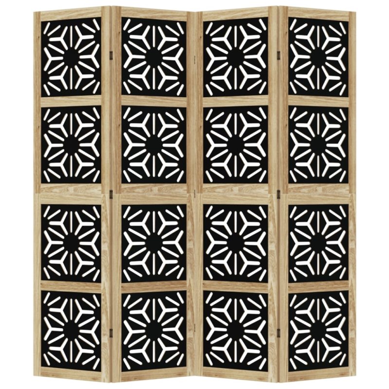 Verleihe deinem Wohnraum eine auffällige dekorative Note mit diesem bezaubernden Raumteiler. Langlebig und leicht zu reinigen: Der Sichtschutz ist aus Paulownia-Massivholz und Holzwerkstoff gefertigt, wodurch er pflegeleicht und strapazierfähig ist.Robuster Rahmen: Der Rahmen aus massivem Paulownia-Holz sorgt für Robustheit und Stabilität. Paulownia-Massivholz ist ein wunderschönes Naturmaterial. Paulowniaholz ist widerstandsfähig gegen Schädlingsbefall und Verrottung.Flexibel und einfach faltbar: Die Paravent-Teile sind jeweils durch 3 Metallscharniere miteinander verbunden. Die oberen und unteren Paneele dieser spanischen Wand sind durch verborgene 2-in-1-Scharniere verbunden. Der Raumtrenner kann also leicht bis zu einem gewissen Grad zusammengeklappt werden; dadurch spart er bei Nichtgebrauch Platz.Vielseitig einsetzbar: Der Raumtrenner eignet sich hervorragend zur Schaffung von Privatsphäre im Schlafzimmer, Wohnzimmer, Büro und anderen Räumen. Du kannst das Paravent auch vor ein Fenster stellen, um starkes Sonnenlicht abzuschirmen.Attraktiver Look: Mit seinem geometrischen Muster verleiht diese faltbare Trennwand jedem Raum mehr Charakter. Achtung:Nur für den Innenbereich!