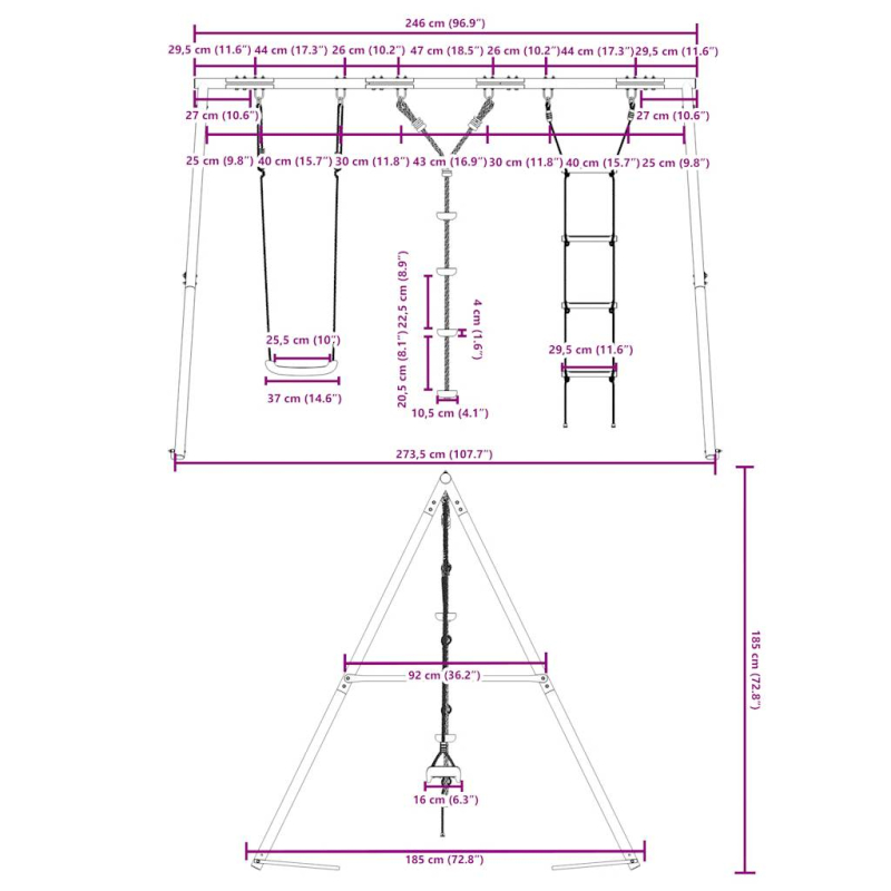 Verwandle deinen Garten in einen Spielplatz für deine Kinder mit dieser Schaukel! Lustiges Spielgerät: Diese Schaukel mit Schaukelsitz, Kletterschaukel und Strickleiter bietet 3 verschiedene Spielmöglichkeiten. So können sich die Kinder nach Herzenslust austoben.Robustes Metallgestell: Das Schaukelgestell besteht aus lackierten Stahlrohren, die rostfrei, äußerst robust und formbeständig sind und eine hohe Stabilität und Langlebigkeit gewährleisten. Die A-förmige Struktur bietet starken, sicheren Halt.Verstellbarer Schaukelsitz: Diese Kinderschaukel ist so konzipiert, dass sie mit deinem Kind mitwächst und daher für Kleinkinder und heranwachsende Kinder gleichermaßen geeignet ist. Durch die Anpassung der Seillänge kannst du den Schaukelsitz leicht an die wechselnden Bedürfnisse deines Kindes anpassen.Multifunktionales Spielgerät für Kinder: Diese Gartenschaukel hilft Kindern, ihr Gleichgewicht, ihre Koordination, ihre Beweglichkeit und ihre Kraft zu verbessern. Es bietet eine Vielzahl von Spiel- und Übungsmöglichkeiten.Breite Anwendungen: Dieses Schaukel-Gestell kann an verschiedenen Orten aufgestellt werden, beispielsweise in Gärten, Hinterhöfen, Kindergärten, auf Spielplätzen usw. Gut zu wissen:Bitte achte aus Sicherheitsgründen darauf, dass jede Schaukel jeweils nur von einem Kind verwendet wird.
