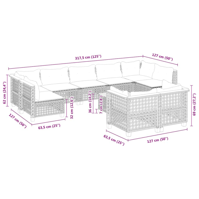 Diese Garten-Sofagarnitur ist die perfekte Ergänzung zu deinem Garten, deiner Terrasse oder deinem Innenhof. Sie bietet einen bequemen und einladenden Platz, um mit Familie und Freunden zu plaudern oder dich einfach nur zu entspannen und das Leben im Freien zu genießen. Langlebiges Material: PE-Rattan, auch als Poly Rattan bekannt, ist ein robustes, pflegeleichtes synthetisches Material, das die Optik von natürlichem Rattan aufweist. Es kennzeichnet sich durch ein geringes Eigengewicht und lässt sich einfach reinigen. Aufgrund seiner Haltbarkeit und Witterungsbeständigkeit wird es häufig bei der Herstellung von Gartenmöbeln verwendet.Bequemes Sitzerlebnis: Dieser Gartensessel mit dick gepolsterten Kissen bietet ein angenehmes Sitzgefühl.Abnehmbarer und waschbarer Bezug: Diese Sitzkissen verfügen über abnehmbare Bezüge für einfaches Waschen und Pflegen.Stabile und pflegeleichte Tischplatte: Dieser Gartentisch besitzt eine Tischplatte aus Akazienholz, die robust und langlebig ist und sich leicht mit einem feuchten Tuch reinigen lässt.Modulares Design: Dank des modularen Designs lassen sich die Gartenmöbel völlig flexibel und einfach umstellen, um deinen Außenbereich ganz individuell zu gestalten. Gut zu wissen:Wir empfehlen dir, deine Gartenmöbel mit einer wasserdichten Hülle zu schützen, um lange Zeit eine ansprechende Optik aufzuweisen.