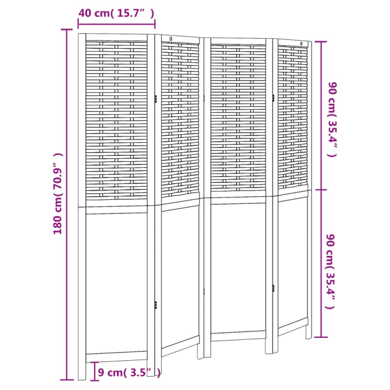 Verleihe deinem Wohnraum eine auffällige dekorative Note mit diesem bezaubernden Raumteiler. Langlebig und pflegeleicht: Der Sichtschutz ist aus natürlichen Bambus und Holzwerkstoff gefertigt, wodurch er leicht zu reinigen und strapazierfähig ist.Robuster Rahmen: Der Rahmen aus massivem Paulownia-Holz sorgt für Robustheit und Stabilität. Paulownia-Massivholz ist ein wunderschönes Naturmaterial. Paulowniaholz ist widerstandsfähig gegen Schädlingsbefall und Verrottung.Flexibel und einfach faltbar: Die Paravent-Teile sind jeweils durch 3 Metallscharniere miteinander verbunden. Die oberen und unteren Paneele dieser spanischen Wand sind durch verborgene 2-in-1-Scharniere verbunden. Der Raumtrenner kann also leicht bis zu einem gewissen Grad zusammengeklappt werden; dadurch spart er bei Nichtgebrauch Platz.Vielseitig einsetzbar: Die Trennwand eignet sich hervorragend zur Schaffung von Privatsphäre im Schlafzimmer, Wohnzimmer, Büro und anderen Räumen. Du kannst das Paravent auch vor ein Fenster stellen, um intensives Sonnenlicht abzuschirmen. Achtung:Nur für den Innenbereich!