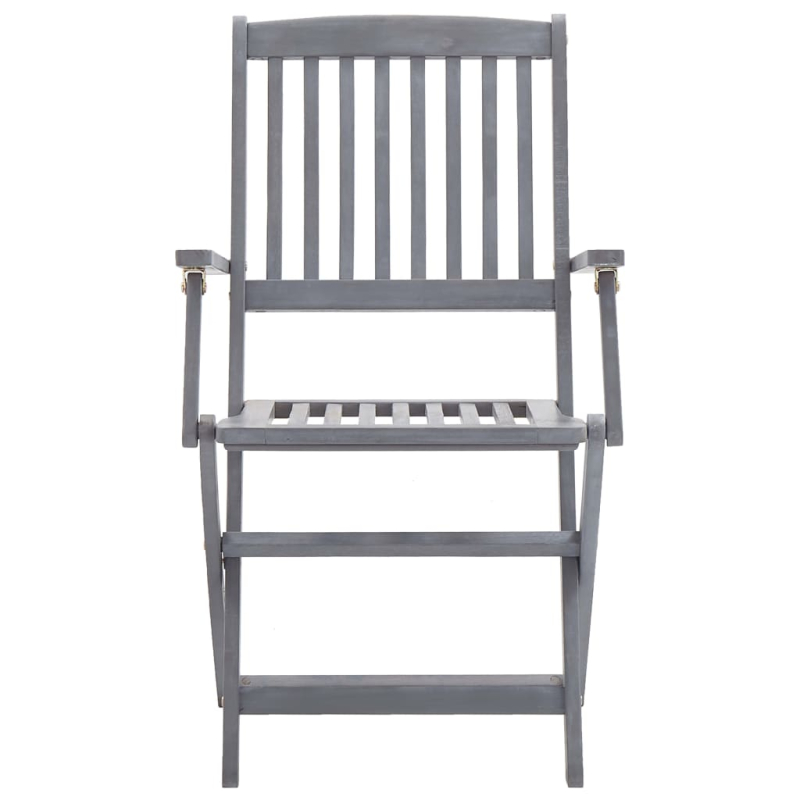 Dieses moderne Set aus Holz-Gartenstühlen mit Sitzpolstern verleiht Ihrem Garten, Ihrer Terrasse oder Ihrem Hof einen Hauch von natürlichem Stil und ist außerdem eine ausgezeichnete Wahl für Mahlzeiten im Freien. Diese Essstühle bestehen aus massivem Akazienholz, einem tropischen Hartholz, was die Stühle witterungsbeständig macht und eine jahrelange Lebensdauer gewährleistet, da massives Akazienholz sowohl belastbar als auch verschleißfest ist. Die grau lasierte Oberfläche ist ganz einfach mit einem feuchten Tuch zu reinigen. Bei Nichtgebrauch lassen sich die Stühle platzsparend zusammenklappen. Darüber hinaus bieten die mitgelieferten Sitzkissen zusätzlichen Komfort beim Entspannen oder Speisen. Zur sicheren Befestigung am Stuhl ist jedes Sitzpolster mit je zwei Bindebändern an zwei Ecken versehen.