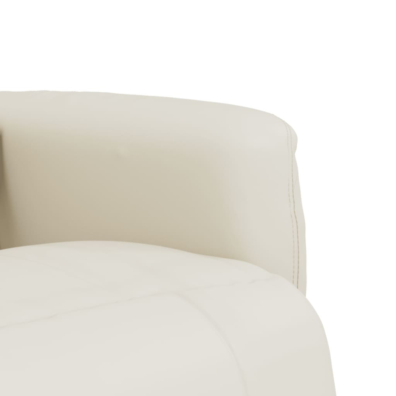 Lehne dich zurück und entspanne dich in diesem äußerst bequemen Massagesessel! Manuell verstellbar: Der Massagesessel ist mit Liegefunktion ausgestattet, sodass du die Rückenlehne und das Fußteil je nach Belieben einstellen kannst.Vibrationsfunktion: Dank der 6 Massagepunkte genießt du eine gezielte Massage. Zudem lassen sich verschiedene Massageprogramme über die mitgelieferte Handsteuerung auswählen. Die Massagefunktion wird über den USB-Anschluss betrieben, der eine zertifizierte 5-V-USB-Stromquelle erfordert (nicht im Lieferumfang enthalten).Um 360 Grad drehbar: Der verstellbare Sessel lässt sich um 360 Grad drehen, was Flexibilität bietet.Bequemes Sitzerlebnis: Der dick gepolsterte Sitz, die Rückenlehne und die Armlehnen sind mit Kunstleder bezogen und sorgen für ein behagliches Sitzgefühl. Das Kunstleder ist ein äußerst strapazierfähiges Material. Es ist schmutzabweisend und lässt sich mit einem feuchten Tuch einfach reinigen. Seine glatte Oberfläche verleiht ihm ein luxuriöses Aussehen und die Schönheit von echtem Leder.Robustes und stabiles Sessel: Der Rahmen aus Sperrholz und Metall sorgt für Robustheit und hohe Stabilität. Das runde Gestell gewährleistet einen festen Halt auf dem Boden und somit optimale Stabilität. Gut zu wissen:Um Platz zu sparen, werden einige Teile oder Kissen in die Möbel gepackt – überprüfen Sie die Reißverschlussfächer oder unter dem Sitzbezug auf versteckte Komponenten.