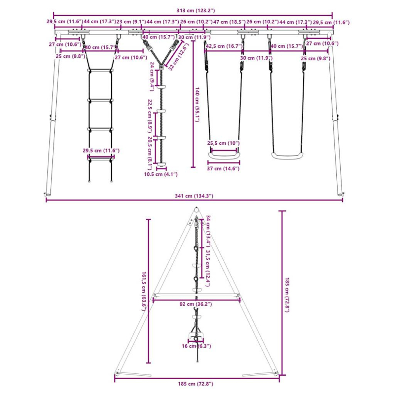 Verwandle deinen Garten in einen Spielplatz für deine Kinder mit dieser Schaukel! Lustiges Spielgerät: Diese Schaukel mit zwei Schaukelsitzen, Kletterschaukel und Strickleiter bietet 3 verschiedene Spielmöglichkeiten. So können sich die Kinder nach Herzenslust austoben.Robustes Metallgestell: Das Schaukelgestell besteht aus lackierten Stahlrohren, die rostfrei, äußerst robust und formbeständig sind und eine hohe Stabilität und Langlebigkeit gewährleisten. Die A-förmige Struktur bietet starken, sicheren Halt.Verstellbarer Schaukelsitz: Diese Kinderschaukel ist so konzipiert, dass sie mit deinem Kind mitwächst und daher für Kleinkinder und heranwachsende Kinder gleichermaßen geeignet ist. Durch die Anpassung der Seillänge kannst du den Schaukelsitz leicht an die wechselnden Bedürfnisse deines Kindes anpassen.Multifunktionales Spielgerät für Kinder: Diese Gartenschaukel hilft Kindern, ihr Gleichgewicht, ihre Koordination, ihre Beweglichkeit und ihre Kraft zu verbessern. Es bietet eine Vielzahl von Spiel- und Übungsmöglichkeiten.Breite Anwendungen: Dieses Schaukel-Gestell kann an verschiedenen Orten aufgestellt werden, beispielsweise in Gärten, Hinterhöfen, Kindergärten, auf Spielplätzen usw. Gut zu wissen:Bitte achte aus Sicherheitsgründen darauf, dass jede Schaukel jeweils nur von einem Kind verwendet wird.