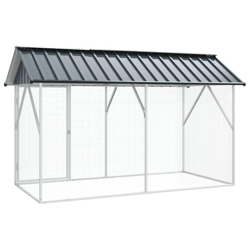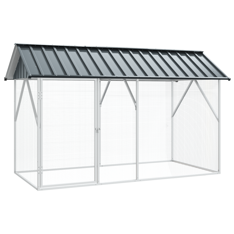 Dieser große, moderne Vogelkäfig ist ideal für draußen! Er bietet deinen gefiederten Freunden einen geräumigen Rückzugsort. Der graue, pulverbeschichtete Stahl sieht super aus und ist langlebig, perfekt für deinen Garten oder Hinterhof, während er deine Vögel sicher hält. Langlebig: Aus solidem verzinktem Stahl und Netz gefertigt, hält dieser Käfig den Anforderungen des Lebens im Freien stand. Sein robustes Design bietet Stabilität, selbst bei viel Aktivität. Bei Regen oder Sonne: Hält allen Wetterbedingungen stand, damit deine Vögel vor Regen, Schnee und schädlichen UV-Strahlen geschützt sind. Das sorgt dafür, dass sie einen sicheren Ort haben, an dem sie gedeihen können. Sauberer Look: Die Pulverbeschichtung hilft, Rost zu vermeiden und sorgt dafür, dass der Käfig gut aussieht, was deinem Garten oder deiner Terrasse einen schönen Touch gibt. Zudem ist er dank der glatten Oberfläche leicht zu reinigen. Geräumiges Design: Mit den Maßen von 112 x 227 x 141 cm bietet dieser Käfig ausreichend Platz für verschiedene Vogelarten, sodass sie ihre Flügel ausbreiten und sich frei bewegen können. Einfache Montage: Der Aufbau ist einfach mit nur zwei Personen und ein paar einfachen Werkzeugen. Klare Anleitungen machen es jedem leicht, ihn zu montieren.