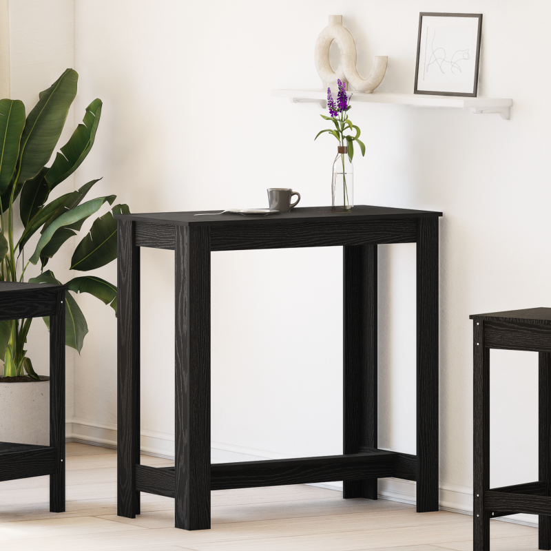 Dieser Bartisch hat echt den coolen Look und moderne Vibes. Aus hochwertigem schwarzen Eichenholz gefertigt, zeigt er seine natürliche Textur und ist super stabil. Mit seinen kompakten Maßen von 102 cm Länge und 50 cm Breite passt er perfekt in verschiedene Innenräume – ideal für entspannte Mahlzeiten oder Drinks in einer gemütlichen Küche oder Essbereich. Kompaktes Design: Dieser Bartisch ist ideal für kleinere Räume und bietet tolle Funktionalität ohne Stil zu verlieren. Robuste Bauweise: Aus strapazierfähigem Holz gefertigt, ist dieser Tisch stark genug für den täglichen Einsatz in Hausbars und Esszimmern. Modernes Aussehen: Die matte schwarze Oberfläche und die texturierte Oberfläche geben ihm einen zeitgenössischen Look, perfekt für minimalistische Deko. Vielseitig einsetzbar: Ob für Drinks mit Freunden oder als zusätzlicher Essplatz, dieser Tisch ist eine großartige Ergänzung für jedes Zuhause. Einfache Pflege: Wische ihn einfach mit einem trockenen Tuch ab, damit er auch nach Jahren noch gut aussieht.