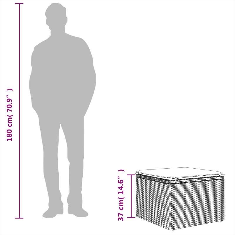 Entspanne dich und genieße die Natur auf diesem bequemen Gartenhocker! Langlebiges Material: PE-Rattan, auch als Poly Rattan bekannt, ist ein robustes, pflegeleichtes synthetisches Material, das die Optik von natürlichem Rattan aufweist. Es kennzeichnet sich durch ein geringes Eigengewicht und lässt sich einfach reinigen. Aufgrund seiner Haltbarkeit und Witterungsbeständigkeit wird es häufig bei der Herstellung von Gartenmöbeln verwendet.Bequemes Sitzerlebnis: Dank des dick gepolsterten Kissens bietet dieser Gartenhocker höchsten Sitzkomfort.Abnehmbarer und waschbarer Bezug: Das Sitzkissen verfügt über einen abnehmbaren Bezug, der sich ganz einfach waschen und pflegen lässt. Robuster und stabiler Rahmen: Dank des pulverbeschichteten Stahlrahmens ist das Outdoor-Möbel robust, stabil und für den täglichen Einsatz im Außenbereich geeignet. Gut zu wissen:Wir empfehlen dir, deine Gartenmöbel mit einer wasserdichten Hülle zu schützen, um lange Zeit eine ansprechende Optik aufzuweisen.