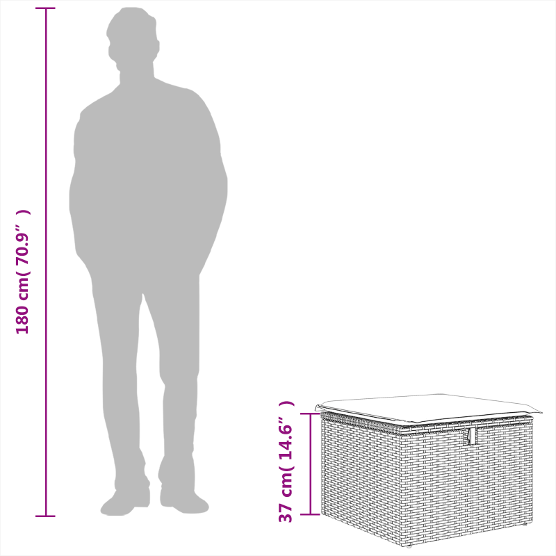 Entspanne dich und genieße die Natur auf diesem bequemen Gartenhocker! Langlebiges Material: PE-Rattan, auch als Poly Rattan bekannt, ist ein robustes, pflegeleichtes synthetisches Material, das die Optik von natürlichem Rattan aufweist. Es kennzeichnet sich durch ein geringes Eigengewicht und lässt sich einfach reinigen. Aufgrund seiner Haltbarkeit und Witterungsbeständigkeit wird es häufig bei der Herstellung von Gartenmöbeln verwendet.Stauraum: Jeder Gartenhocker verfügt über ein Staufach unter der Sitzfläche, das Platz zur Aufbewahrung von Gartenwerkzeugen und anderen Gegenständen bietet.Bequemes Sitzerlebnis: Dank des dick gepolsterten Kissens bietet dieser Gartenhocker höchsten Sitzkomfort.Abnehmbarer und waschbarer Bezug: Das Sitzkissen verfügt über einen abnehmbaren Bezug, der sich ganz einfach waschen und pflegen lässt.Robuster und stabiler Rahmen: Dank des pulverbeschichteten Stahlrahmens ist das Outdoor-Möbel robust, stabil und für den täglichen Einsatz im Außenbereich geeignet. Gut zu wissen:Wir empfehlen dir, deine Gartenmöbel mit einer wasserdichten Hülle zu schützen, um lange Zeit eine ansprechende Optik aufzuweisen.