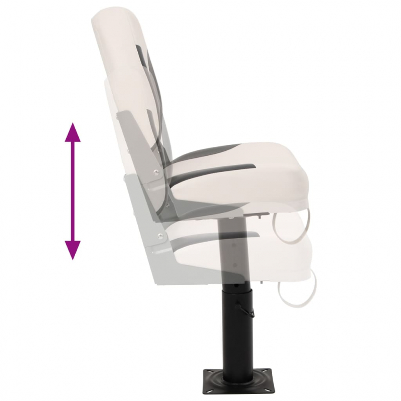 Dieses praktische Bootssitz-Set ist eine großartige Bereicherung für dein Boot. Einfache Reinigung: Dieser Bootssitz besteht aus PVC und PU, wodurch er wasserfest ist und sich auch leicht reinigen und schnell trocknen lässt.Langlebiges Material: Der Bootssitz-Sockel besteht aus Stahl und ist daher robust und auf eine lange Lebensdauer ausgelegt. Die schwarze Pulverbeschichtung bietet zusätzlichen Schutz vor der rauen Meeresumgebung.Bequem: Dieser Bootssitz besitzt eine Rückenlehne, die mit Kompressionsschaum gepolstert ist. So genießt du den ganzen Tag über eine angenehme und rückenschonende Sitzposition.Klappdesign: Die Rückenlehne lässt sich bei Nichtgebrauch herunterklappen. Darüber hinaus erhöht der eingenähte Befestigungsgurt sowohl die Haltbarkeit als auch den Komfort beim Tragen und Aufbewahren.Höhenverstellbar: Dieses Stuhlbein lässt sich zwischen 28 cm und 45,5 cm in der Höhe verstellen, um unterschiedlichen Anforderungen gerecht zu werden.Universell kompatibel: Dieser Stuhlfuß eignet sich für alle Bootssitze mit flacher Unterseite oder bei denen die Lochgröße mit Kugellagern kompatibel ist, um unterschiedlichen Anforderungen gerecht zu werden. Gut zu wissen:Die Befestigungsschrauben für das Drehgelenk sind nicht im Lieferumfang enthalten.