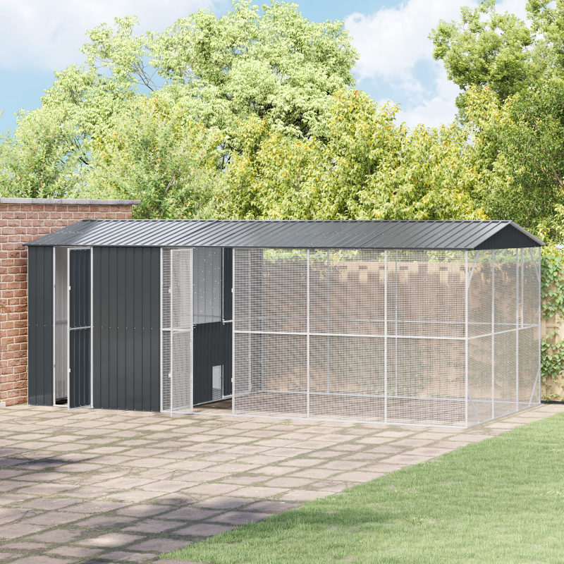 Dieser moderne graue Vogelkäfig ist für Haustiere gemacht und vereint Stil und Funktionalität für einen tollen Außenbereich. Mit seiner schlanken rechteckigen Form und dem stabilen Metallrahmen ist er ein sicherer Ort für deine gefiederten Freunde und sieht dabei auch noch sehr gut aus. Außergewöhnliche Haltbarkeit mit stabilem Metallrahmen, der Langlebigkeit bei unterschiedlichen Wetterbedingungen garantiert. Das tragbare Design macht es einfach, ihn zu bewegen oder zu transportieren, je nach deinen Bedürfnissen. Der robuste Rahmen bietet viel Platz für mehrere Vögel, sodass sie sich frei und komfortabel bewegen können. Das matte Finish sorgt für ein elegantes Erscheinungsbild und reduziert Blendung, somit sieht man die Vögel und die Betrachter gut. Einfache Montage, mit dem passenden Werkzeug kannst du ihn schnell aufstellen.