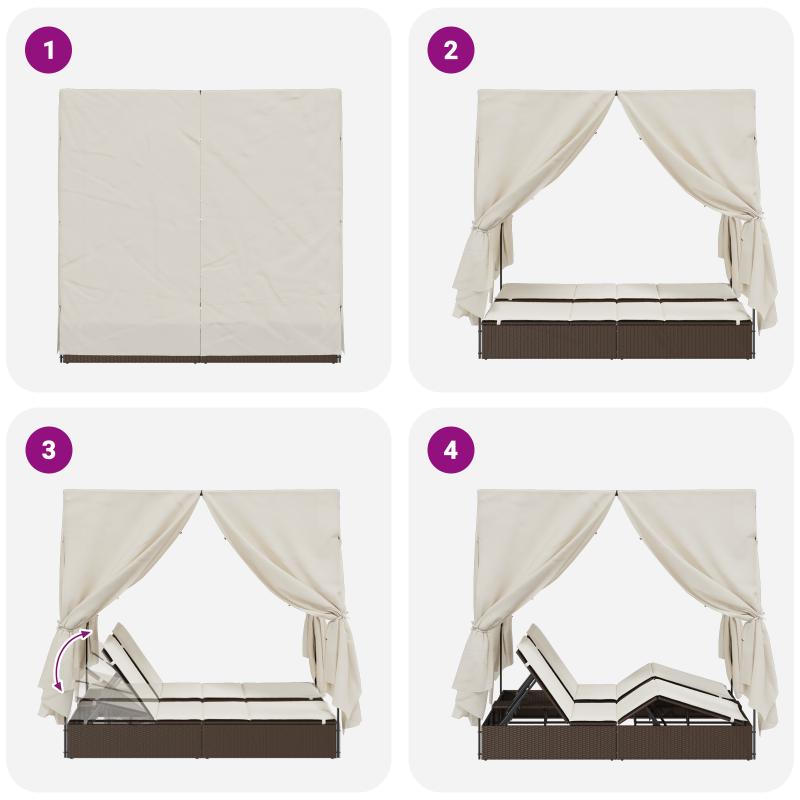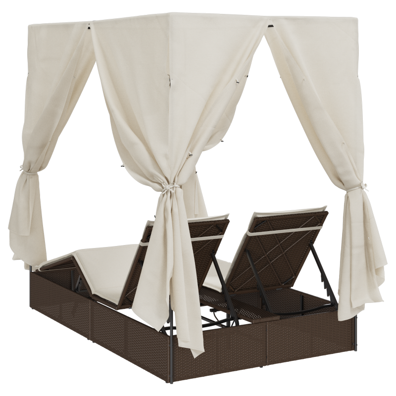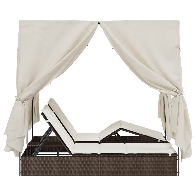 Dieses Outdoor Lounge-Bett mit Dach und Kissen vereint Stil und Funktionalität und ist eine tolle Ergänzung für jeden Außenbereich. Mit seinem modernen Design und der schönen braunen und cremefarbenen Farbpalette bringt es frischen Wind auf deine Terrasse, deinen Balkon oder in deinen Garten und bietet einen perfekten Ort zum Entspannen. Die verstellbare Neigung hilft dir dabei, den perfekten Winkel zum Entspannen zu finden und verbessert dein Liege-Erlebnis. Die hochwertige Verarbeitung aus synthetischem Rattan macht es langlebig und widerstandsfähig gegen verschiedene Wetterbedingungen. Das Lounge-Bett bietet genug Platz für zwei Personen, um draußen bequem gemeinsam zu chillen. Das schicke Dach sieht nicht nur gut aus, sondern schützt auch vor der Sonne und macht deine Zeit im Freien noch angenehmer. Dieses vielseitige Stück ist bereit für all den Sommer-Spaß, egal ob du sonnenbaden, lesen oder deinen Outdoor-Urlaub genießen möchtest.