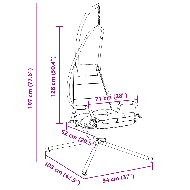Dieser Hängestuhl bringt Stil und Komfort zusammen und ist ein absolutes Muss für deinen Außenbereich. Der schicke beige Stahlrahmen und der weiche Stoff bieten dir einen gemütlichen Ort, um im Garten oder auf dem Balkon zu chillen, das ganze Jahr über. Ergonomischer Komfort: Entworfen für entspanntes Chillen, ist der Stuhl mit einem weichen, gepolsterten Sitz ausgestattet, ideal für lange Entspannungssessions. Robuste Materialien: Der Stuhl besteht aus starkem pulverbeschichtetem Stahl und UV-beständigem Stoff, der langlebig und gleichzeitig bequem bleibt. Stylischer moderner Look: Mit seinem auffälligen Design ist dieser Stuhl ein echter Hingucker für entspannte Stunden im Freien auf deinem Balkon oder im Garten. Einfach zu montieren: Kommt mit allen nötigen Werkzeugen und klaren Anweisungen, was die Montage extrem einfach macht, sodass du schnell Spaß haben kannst. Perfekt für Einzelpersonen: Der Stuhl bietet den idealen Rückzugsort für eine Person, um sich mit einem Buch oder einem Getränk zu entspannen.