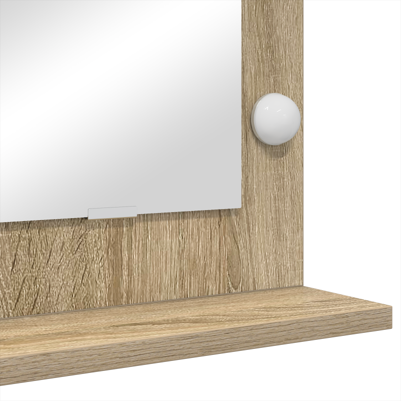 Dieser Kosmetikspiegel aus Sonoma Eiche ist ein Muss für deine Pflegeroutine - perfekt zum Schminken oder Fertigmachen. Sein stylisches Design und die LED-Lichter sehen nicht nur toll aus, sondern bieten auch die Funktionalität, die du für ein perfektes Ergebnis brauchst. Integrierte LED-Beleuchtung: Die eingebauten LED-Lichter sorgen für gleichmäßiges, helles Licht und machen deine Pflegeroutine einfach. Perfekt für den richtigen Look mit warmem weißen Licht. Chices Design: Passt in jede moderne Einrichtung, mit eleganten Linien und einem schönen Sonoma Eichen-Finish. Verleiht deinem Schlafzimmer oder Badezimmer einen Hauch von Klasse. Platzsparende Wandmontage: Die wandmontierbare Eigenschaft spart Platz und ist großartig für kleine Bereiche, während sie dir trotzdem eine funktionale Fläche für Schönheitsaufgaben bietet. Einfache Montage: Hol dir einfach einen Schraubendreher und du hast diesen Spiegel im Handumdrehen montiert, damit du ASAP mit deiner Routine loslegen kannst. Zwei Personen können ihn auch leicht zusammen anbringen. Hochwertige Spiegeloberfläche: Mit einer hochauflösenden reflektierenden Oberfläche sorgt der Spiegel dafür, dass du bei Haaren oder Makeup immer richtig aussiehst.