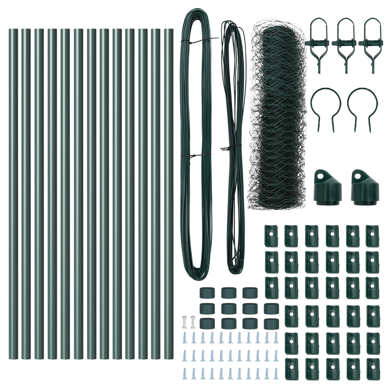 Dieses Outdoor-Zäunset bietet dir eine praktische Möglichkeit, Gärten und Außenbereiche zu trennen. Mit seiner schönen waldgrünen Farbe und robusten Bauweise passt es perfekt in jeden Garten und sorgt für Langlebigkeit und Sicherheit – ideal für alle Arten von Außenanwendungen. Langlebiges Material: Hergestellt aus pulverbeschichtetem Stahl, ist dieses Zäunset darauf ausgelegt, den Elementen zu trotzen und sichert dir lange Freude an deinem Außenbereich. Die glatte, wetterbeständige Oberfläche trägt zur Haltbarkeit bei. Perfekt für Gärten: Die stylische waldgrüne Farbe fügt sich gut in die Natur ein und bietet gleichzeitig eine starke Barriere für Haustiere und Kinder, während sie in deinem Garten richtig gut aussieht. Einfache Montage: Mit dir im Hinterkopf entwickelt, lässt sich das Set ganz einfach alleine mit nur wenigen Werkzeugen wie einem Hammer, Gummihammer und Maßband zusammenbauen, sodass du deinen Zaun schnell aufstellen und in deinem Außenbereich relaxen kannst. Vielseitige Größen: Das Zaunset kommt in der Größe 25 x 0,5 m (36 mm Maschen), die sich super für unterschiedliche Platzierungen eignet und so all deinen Zaunbedürfnissen gerecht wird, egal wie groß oder klein dein Garten ist. Komplettes Kit: Dieses Zäunset enthält alles, was du für eine stressfreie Installation brauchst, einschließlich Zaunpfosten und Drahtgewebe, sodass du bestens ausgestattet bist.