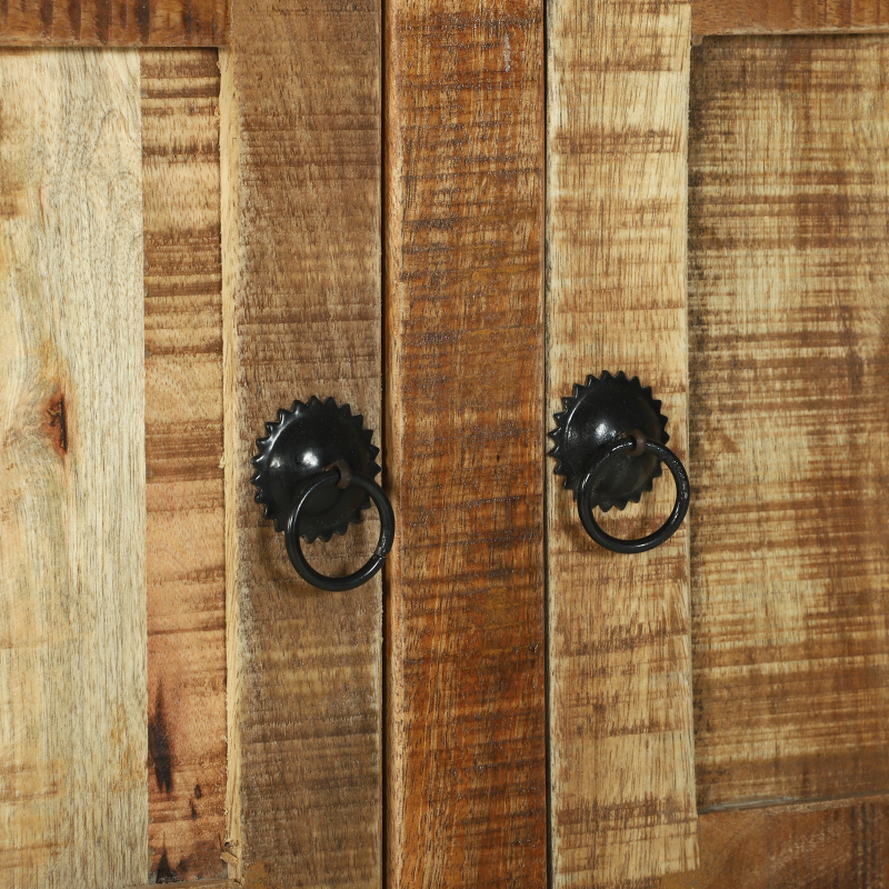 Der rustikale Couchtisch ist praktisch und stylish und bringt einen natürlichen Touch in dein Wohnzimmer. Die matte braune Oberfläche ist perfekt, um Drinks zu servieren oder deine Lieblingsdeko zu zeigen und sorgt für eine gemütliche Atmosphäre für Familie und Freunde. Stylisches Design: Der Couchtisch hat einen einzigartigen rustikalen Stil, der perfekt mit jeder Einrichtung harmoniert und zum Blickfang in jedem Raum wird. Robuste Konstruktion: Aus massivem, rauem Mangoholz, vereint er Attraktivität mit Langlebigkeit und sorgt für die nötige Stabilität. Funktionale Aufbewahrung: Die zwei Stauraumfächer halten dein Wohnzimmer in Ordnung und bieten Platz für Bücher, Zeitschriften und andere wichtige Dinge. Einfache Montage: Du kannst den Couchtisch easy mit einem Schraubendreher und einem Freund zusammenbauen, da wirds nicht kompliziert. Vielseitige Nutzung: Perfekt für verschiedene Aktivitäten, von Kaffeepause bis Snacks servieren, ist dieser Tisch eine praktische Wahl für dein Wohnzimmer.