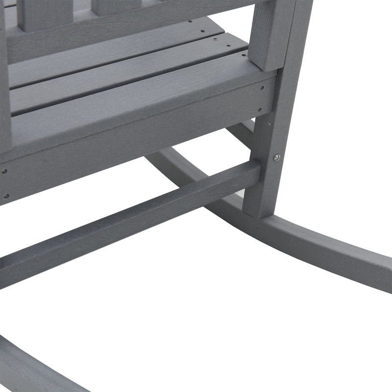 Dieser Garten-Schaukelstuhl vereint Komfort mit einem ergonomischen Design und ist eine super Ergänzung für deinen Balkon oder deine Veranda. Hergestellt aus hochwertigem recyceltem Kunststoff und in einer schicken hellgrauen Struktur gehalten, wertet dieser Stuhl jeden Außenbereich richtig auf. Haltbarkeit: Unser Schaukelstuhl hält verschiedenen Wetterlagen stand und ist aus robusten Materialien gemacht, ideal für den Outdoor-Spaß. Design: Das bequeme Design sorgt für einen modernen Touch in deinem Garten oder auf deiner Terrasse und schafft einen schönen Platz zum Entspannen. Komfort: Seine sanfte Schaukelbewegung macht ihn zum perfekten Ort, um nach einem langen Tag zu relaxen oder ein Buch in der Sonne zu genießen. Pflege: Einfache Reinigung – einfach mit mildem Seifenwasser abwischen, damit er jahrelang gut aussieht. Vielseitigkeit: Dieser Schaukelstuhl passt super in verschiedene Außenbereiche und ist ein Muss für Erwachsene, die sich entspannen wollen.