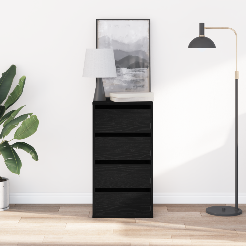 Diese kompakte Kommode verbindet Funktionalität mit Stil und ist die perfekte Aufbewahrungslösung für jedes moderne Schlafzimmer. Mit ihrem minimalistischen Design und dem klassischen schwarzen Eichenfinish fügt sie sich nahtlos in verschiedene Einrichtungsstile ein und bietet genug Platz, um Kleidung oder kleine Dinge zu organisieren. Viel Stauraum: Diese Kommode hat mit drei großzügig bemessenen Schubladen viel Platz für Kleidung, Accessoires und andere wichtige Dinge, damit dein Wohnbereich ordentlich bleibt. Schlankes Design: Die glatte, matte Oberfläche der schwarzen Eiche unterstreicht ihr schickes Erscheinungsbild und bringt einen stilvollen Akzent in dein Schlafzimmer oder Wohnbereich. Minimalistischer Stil: Fokussiert auf Einfachheit und Funktionalität, passt das Design perfekt für alle, die eine saubere Umgebung schätzen und sorgt dafür, dass sie deine Einrichtung ergänzt ohne sie überladen. Robuste Konstruktion: Aus massiver Eiche gefertigt, garantiert diese Kommode Langlebigkeit und Stabilität, sodass sie intensiv genutzt werden kann und ihre elegante Optik über Jahre behält. Für drinnen: Diese Kommode ist für den Innenbereich konzipiert und eignet sich perfekt für Schlafzimmer, Flure oder andere Wohnräume, wo Organisation wichtig ist.