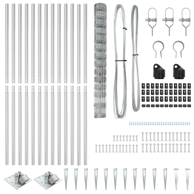 Der Feldzaun ist ein solider Zaun aus verzinktem Stahl, der super für alle Arten von Außenanwendungen ist. Sein elegantes silbernes Finish und der robuste Aufbau machen ihn zu einer tollen Wahl, um deine Außenbereiche zu sichern und zu verschönern, egal ob für Höhlen, Gärten oder Bauernhöfe. Robuste Konstruktion: Die verzinkte Stahlkonstruktion sorgt für eine langlebige, wetterfeste Barriere, die dir überall Schutz gibt. Einfache Installation: Kommt mit Komponenten, die für zwei Personen gedacht sind, um schnell alles aufzubauen und sicherzustellen, dass es gut verankert ist. Vielseitige Nutzung: Ideal für Hinterhöfe, Gärten oder Landwirtschaft; passt zu allen Arten von Aufbauten. Robustes Design: Hergestellt mit stabilen Spike-Ankern, hält der Zaun selbst den Naturgewalten stand. Stylische Erscheinung: Mit einer glatten und modernen Oberfläche verleiht dieser Zaun deinem Außenbereich einen Hauch von Eleganz, während er zuverlässig seinen Dienst tut.