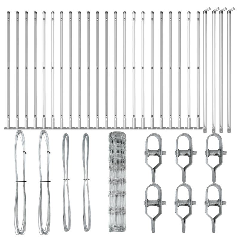 Dieser Feldzaun kombiniert robustes verzinktes Metall mit vielseitigen Einsatzmöglichkeiten, was ihn zu einer idealen Outdoor-Barriere macht. Mit seinem sanften grauen Finish und stabiler Bauweise sorgt er nicht nur für Sicherheit, sondern sieht auch gut aus. Perfekt für Gärten, Bauernhöfe und mehr. Robuste Konstruktion: Das Draht- und Beton-Design sorgt für eine langlebige, wetterfeste Barriere. Einfache Installation: Alles, was du für den Aufbau brauchst, ist dabei – Zaunpaneele, Pfosten und Betonsockel. Vielseitige Nutzung: Ideal für Sicherheitslösungen im Garten oder Bauernhof, passend für viele Outdoor-Bedürfnisse. Robustes Design: Starke Pfosten bieten Stabilität, selbst bei rauen Bedingungen. Stylisches Erscheinungsbild: Die glatte Oberfläche verleiht deinem Außenbereich einen modernen Look, ohne den Hauptzweck zu verlieren.