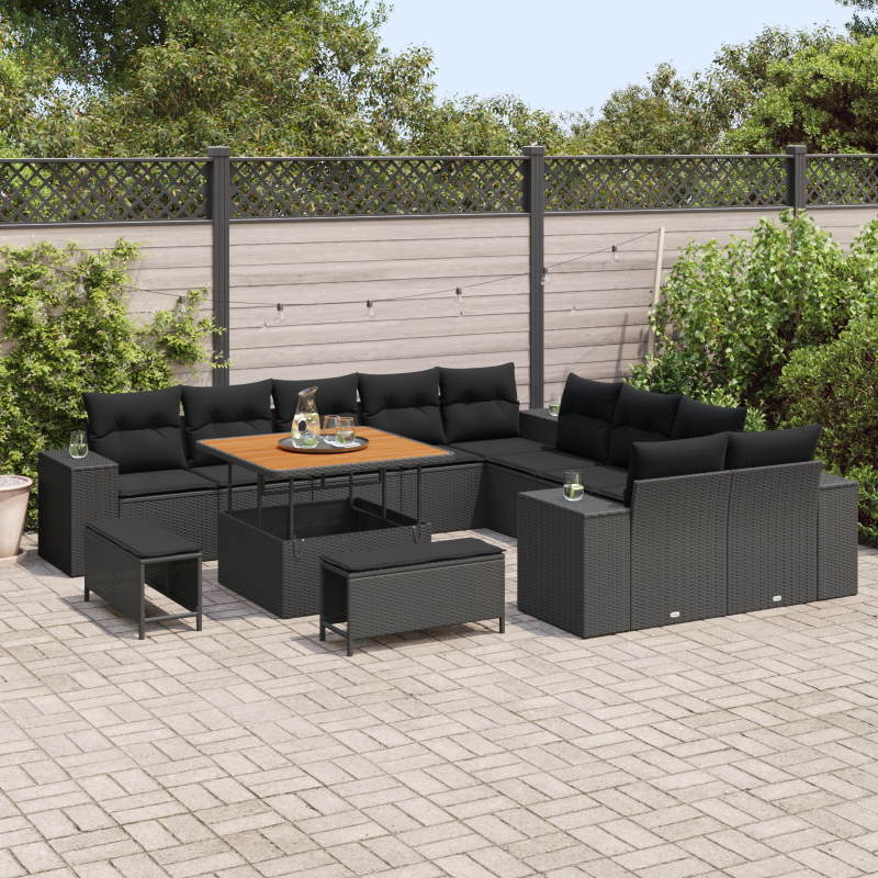 Dieses Garten-Sofa-Set ist eine tolle Ergänzung für jeden Außenbereich. Es bietet einen stylischen und bequemen Platz, um mit Freunden zu entspannen. Hergestellt aus robustem Poly-Rattan, kommt es mit kuscheligen Kissen aus wetterbeständigem Stoff, die guten Halt geben. Es verwandelt deine Terrasse oder deinen Garten in den idealen Ort für Entspannung und geselliges Beisammensein. Wetterbeständigkeit: Die UV-beständigen Materialien halten dieses Garten-Sofa-Set auch unter Sonneneinstrahlung strahlend. Die Kissen sind dafür gemacht, den Witterungen zu trotzen und halten lange. Geräumige Sitzmöglichkeiten: Es bietet bequem Platz für fünf Personen, wobei jeder Sitz bis zu 110 kg tragen kann. Perfekt für Partys oder einfach zum Entspannen. Stylisches Design: Mit einem modernen Look und klaren Linien sorgt das schwarze Poly-Rattan für eine elegante Note. Aufbewahrungslösungen: Teile des Sets haben Stauraum, sodass du Kissen oder Spiele ordentlich unterbringen kannst. Bequeme Kissen: Jedes Kissen hat einen abnehmbaren Reißverschluss für eine einfache Reinigung und bleibt immer frisch und einladend.