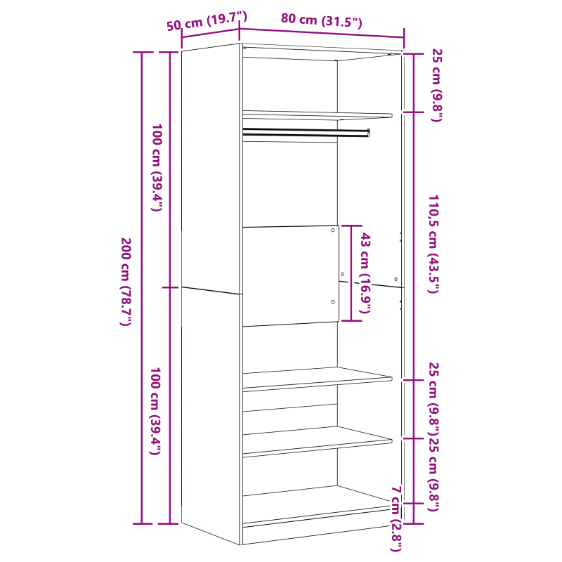 Dieser Kleiderschrank kombiniert Funktionalität und modernes Design und bietet eine schicke Aufbewahrungslösung für jedes Zuhause. Mit seinem geräumigen Layout hat er anpassbare Regale und eine Kleiderstange für all deine Sachen. Haltbares Material: Aus Holzwerkstoff hergestellt, der Langlebigkeit garantiert. Großes Layout: Bietet eine Größe von 80 x 50 x 200 cm, perfekt für die Organisation deiner Kleidung und Accessoires. Modernes Design: Das elegante, matte Schwarz-Eiche Finish harmoniert super mit zeitgenössischen Einrichtungsstilen. Vielseitige Funktionalität: Ideal zum Verstauen von Kleidung in Schlafzimmern, begehbaren Kleiderschränken und mehr. Einfache Montage: Kommt mit einfach zu verstehenden Anweisungen für eine schnelle Einrichtung, die nur zwei Personen benötigt.
