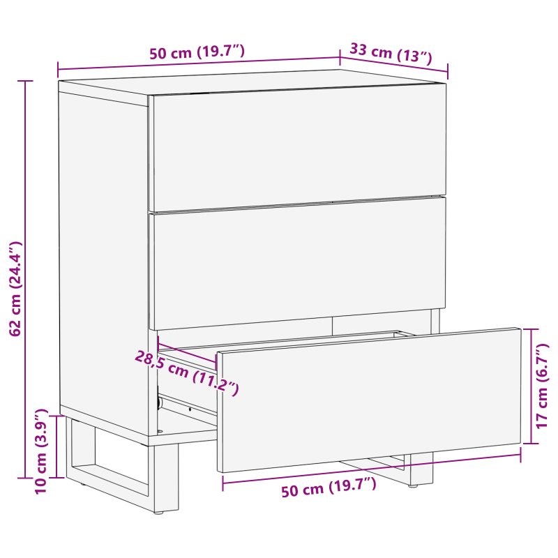 Dieser Nachttisch vereint Praktikabilität mit modernem Stil – ein Must-Have fürs Schlafzimmer. Sein einzigartiges Wellenmuster und die starke Bauweise bringen frischen Wind in deine Deko und bieten praktischen Stauraum direkt neben deinem Bett. Viel Stauraum: Die drei großen Schubladen sind perfekt zum Verstauen persönlicher Gegenstände oder Schlafzubehör und gleiten geschmeidig für einfachen Zugriff auf das, was du brauchst. Stylisches Design: Das ansprechende Wellenmuster gibt deinem Raum einen modernen Touch und passt zu vielen Stilrichtungen, von modern bis rustikal. Robuste Bauweise: Dieser Nachttisch ist aus massivem Mangoholz gefertigt und so stabil, dass er dem täglichen Gebrauch standhält. Vielseitig einsetzbar: Dieser stylische Tisch kann nicht nur als Nachttisch dienen, sondern bringt auch Glamour in Wohnräume und andere Bereiche, indem er elegante Aufbewahrung bietet. Einfache Pflege: Wische die Oberfläche einfach mit einem trockenen Tuch ab, um den schönen Glanz zu erhalten.