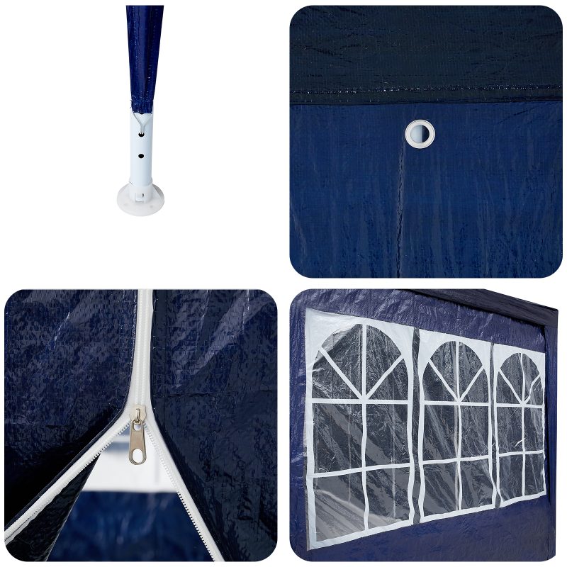Dieses Partyzelt eignet sich super für Outdoor-Events und bietet viel Platz für bis zu 10 Personen. Mit seinem hellblauen Look und der einfachen Handhabung wird jeder Garten oder jede Terrasse ein einladender Treffpunkt – ideal für Partys, Buffets oder festliche Anlässe. Geräumige Anordnung: Mit 400 x 800 cm hat das Zelt viel Platz für Gäste, um sich zu bewegen und das Essen und Trinken zu genießen. Ideal für Outdoor-Events mit flexiblen Arrangements. Haltbares Material: Aus wasserdichtem Polyethylen gefertigt, schützt das Partyzelt dich und deine Gäste vor unvorhersehbarem Wetter. Der stabile Stahlrahmen sorgt für Sicherheit und die UV-beständigen Eigenschaften halten die Aktivitäten sicher. Unkomplizierte Montage: Das Zelt wird mit Erdankern, einer Tragetasche und weiteren wichtigen Teilen geliefert. Es ist einfach für zwei Personen aufzubauen und schnell einsatzbereit. Vielseitige Nutzung: Perfekt für alle Arten von Outdoor-Events wie Hochzeiten, Festivals und Gartenpartys. Es erfüllt nicht nur praktische Anforderungen, sondern hebt auch die Atmosphäre deiner Veranstaltung. Modernes Erscheinungsbild: Das schlichte Design mit glatter Oberfläche fügt sich gut in verschiedene Outdoor-Umgebungen ein und verbindet Stil mit Funktion für jedes Event.