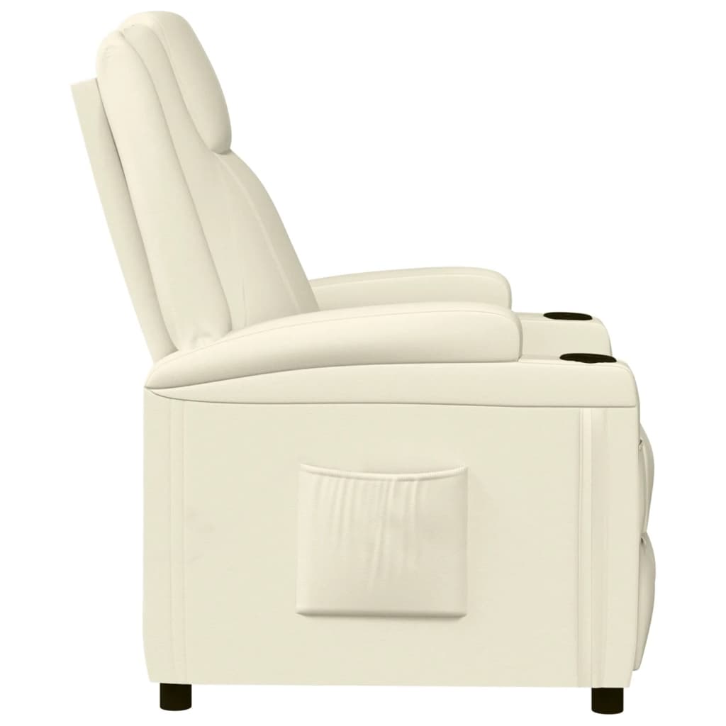 Lehne sich zurück und entspanne sich in diesem äußerst bequemen Relaxsessel! Manuelle Liegefunktion: Der Sessel kann manuell in 3 Positionen verstellt werden, so dass die Rückenlehne und der Fußteil je nach Bedarf eingestellt werden können.Bequemes Sitzerlebnis: Der dick gepolsterte Sitz, die Rückenlehne und die breiten, mit Kunstleder bezogenen Armlehnen sorgen für ein behagliches und angenehmes Sitzgefühl. Künstliches Leder ist ein äußerst langlebiges Material. Es ist schmutzabweisend und lässt sich mit einem feuchten Tuch einfach reinigen. Durch die glatte Oberfläche weist es die luxuriöse Schönheit von Echtleder auf.Solider und stabiler Rahmen: Der Rahmen aus Holz und Metall sorgt für eine solide Struktur und hohe Stabilität. Dieser TV-Sessel ist bequem und langlebig.