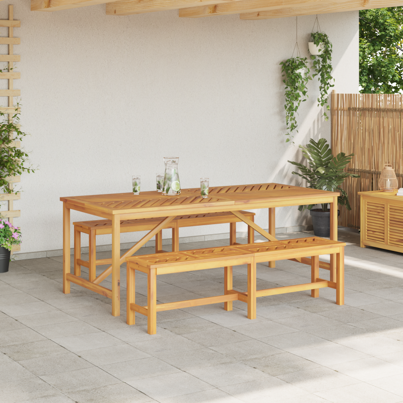 Dieses Garten-Esstischset kombiniert Bequemlichkeit mit Stil und ist perfekt für deinen Außenbereich. Hergestellt aus solidem Akazienholz bietet es einen geräumigen Tisch und sechs dazu passende, bequeme und stilvolle Stühle. Robustes Material: Aus massivem Akazienholz hergestellt, ist dieses Set stabil und bestens für den Außenbereich geeignet. Schickes Design: Der moderne Stil und die glatte Textur schaffen eine angenehme Atmosphäre für Essen oder gesellige Zeiten. Große Sitzplatzkapazität: Platz für bis zu 6 Personen, ideal für Essen oder entspannte Treffen. Pflegeleichte Oberfläche: Die matte Oberfläche sieht toll aus und lässt sich leicht reinigen, damit du eine schöne Outdoor-Essenserfahrung genießen kannst. Vielfältig einsetzbar: Perfekt für Mahlzeiten im Freien, Familientreffen oder entspannte Sommerabende.