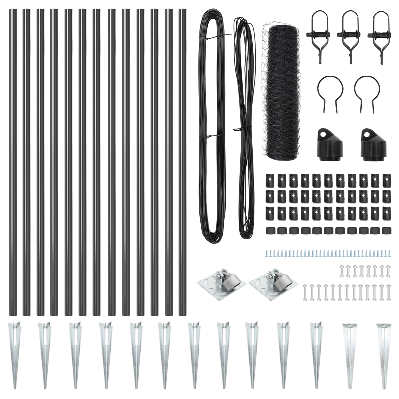 Dieses graue Außenzaun Set hilft dir, Grenzen abzustecken und dein Eigentum zu schützen. Mit einem schicken grauen Finish und starken Materialien sieht es nicht nur gut aus, sondern hält auch lange durch. Langlebiges Material: Aus einer Mischung aus Stahl und PVC, hält dieses Zaun Set UV-Strahlung stand und bleibt jahrelang stabil. Perfekt für den Außenbereich: Der stylische graue Farbton und die glatte Oberfläche bieten eine schicke Optik und gleichzeitig eine sichere Barriere für Gärten und Außenflächen. Einfache Montage: Für eine unkomplizierte Handhabung lässt sich das Set schnell mit zwei Personen aufbauen und benötigt nur einen Hammer, einen Gummihammer und ein Maßband. Vielseitige Abmessungen: Mit 25 x 0,8 m ist dieses Zaun Set ideal zum Abstecken von Grenzen oder zum Schutz deines Grundstücks und passt in viele Außenbereiche. Komplettes Kit: Enthält alles, was du brauchst, wie Zaunpfosten, Maschen, Ankerstifte und Befestigungen für eine unkomplizierte Installation.