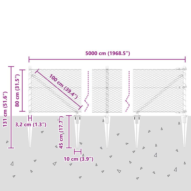 Der Hexagonzaun ist perfekt, um Außenbereiche abzutrennen. Mit seiner modernen grauen Farbe und stabilen Bauweise sieht er in zeitgenössischen Umgebungen klasse aus und bietet dir die Langlebigkeit und Sicherheit, die du für deinen Garten brauchst. Robustes Material: Aus Metall und Kunststoff, ist dieser Zaun UV-beständig, für verschiedene Wetterbedingungen geeignet und hat eine lange Lebensdauer. Perfekt für draußen: Die stylische graue Farbe steigert die moderne Atmosphäre deines Außenbereichs und bietet gleichzeitig eine starke Barriere für Haustiere und Kinder. Einfache Montage: Entwickelt für Effizienz, kann er von zwei Personen schnell mit nur einem Gummihammer und einem Maßband aufgebaut werden, damit dein Außenbereich schnell einsatzbereit ist. Umfassendes Set: Dieses Zaunset enthält alles, was du brauchst, wie Pfosten, Maschenrollen und Ankerstiche, damit die Montage reibungslos läuft.