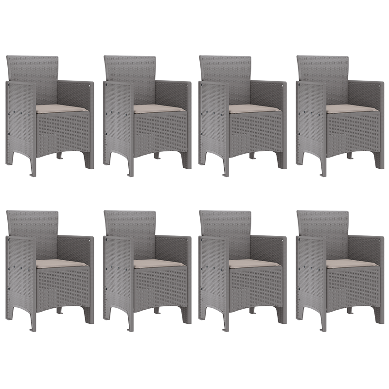 Dieses Garten-Essset aus strapazierfähigem Kunststoff-Rattan hat einen geräumigen rechteckigen Tisch und acht bequeme Stühle – super für Essen im Freien. Mit seinem modernen Look und der hellgrauen Farbe bringt es Schwung in jeden Balkon oder jede Terrasse. Es schafft einen stilvollen und praktischen Raum für Treffen, Grillpartys und Familientreffen. Robuste Bauweise: Das Kunststoff-Rattan sorgt dafür, dass dieses Essset auch im Freien lange hält und bei verschiedenen Wetterbedingungen gut aussieht. Geräumige Sitzplätze: Mit einem Tisch, der Platz für 8 Personen bietet, und acht passenden Stühlen, ist dieses Set perfekt für das Feiern mit Familie und Freunden im Freien. Modernes Design: Die klaren Linien und die matte Oberfläche des Sets geben ihm einen modernen Touch, der gut zu jeder Außen-Deko passt und das Gesamtbild deines Bereichs aufwertet. Wetterfest: Dieses Garten-Essset fürs Draußen hält den Elementen stand und ist daher eine praktische Wahl für saisonale Feiern. Pflegeleicht: Die Materialien machen die Reinigung super einfach; einfach die Oberflächen abwischen, ohne aggressive Chemikalien zu brauchen.