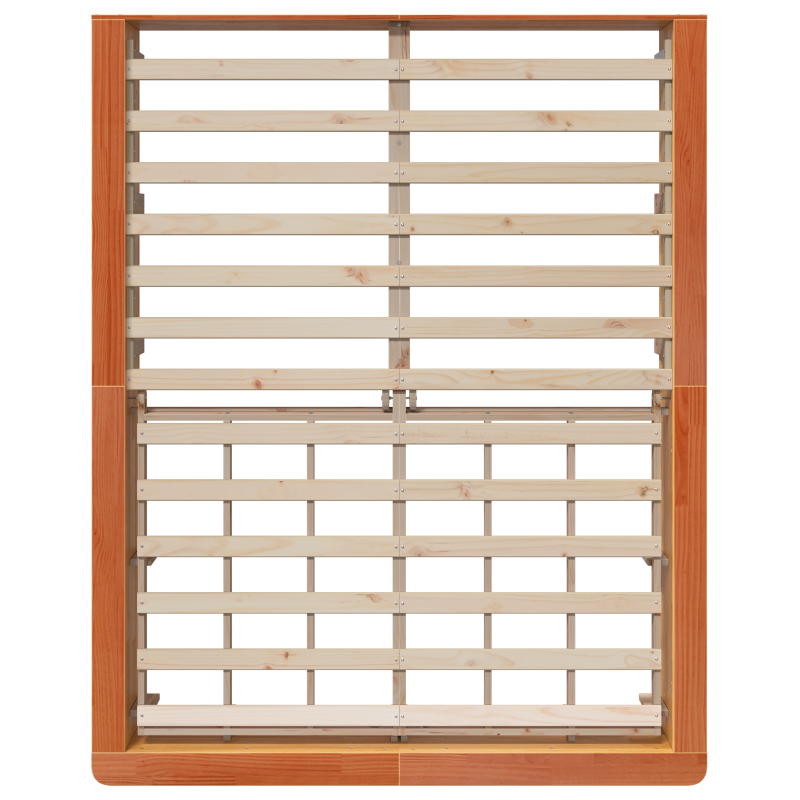 Dieses stylische Bettgestell verbindet Funktionalität mit modernem Design, perfekt für Erwachsene, die Komfort und Bequemlichkeit schätzen. Der robuste Aufbau und die schöne gewachste braune Oberfläche sorgen nicht nur für einen Hingucker im Schlafzimmer, sondern garantieren auch Langlebigkeit und viel Stauraum darunter. Viel Stauraum: Der hochklappbare Stauraum bietet genug Platz, um Bettwäsche, Kleidung oder andere Sachen aus dem Blickfeld zu verstauen, was hilft, dein Schlafzimmer ordentlich zu halten. Besonders praktisch in kleinen Räumen, wo Stauraum wichtig ist. Heb einfach die Matratze an, um alles zu holen, was du brauchst. Stabil und langlebig: Hergestellt aus massivem Holz, ist dieses Bettgestell darauf ausgelegt, lange zu halten und täglichem Verschleiß standzuhalten. Mit seinem stabilen Design weißt du, dass es eine Vielzahl von Matratzen bequem unterstützen kann – perfekt für erholsamen Schlaf. Pflegeleicht: Die Reinigung geht leicht von der Hand – ein feuchtes Tuch genügt. Perfekt für alle, die immer im Stress sind. Ein ordentliches Bettgestell ist wichtig für ein angenehmes Schlafzimmer. Einfache Montage: Eine schnelle und stressfreie Montage ermöglicht dir, dein neues Bettgestell schnell und ohne komplizierte Anleitungen aufzubauen. Mit nur wenigen benötigten Werkzeugen bist du im Handumdrehen bereit – perfekt für alle, die es sofort benutzen wollen. Modernes Design: Der moderne Stil mit klaren Linien passt perfekt zu jeder Schlafzimmerdekoration. Es ist ein vielseitiges Stück, das sowohl Stil als auch Funktionalität bietet.